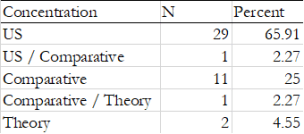 Of the 49 who responded so far, a few have not taught yet, but most have. No one is saying this is a representative sample, so take the results with a grain of salt. Most of those who responded teach a US-centric course, with a quarter teaching a comparative R&P course.