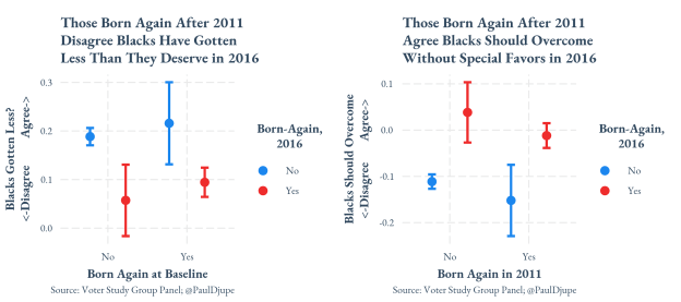 […] put up a post yesterday that used Voter Study Group panel data to show that becoming born-again/evangelical from […]