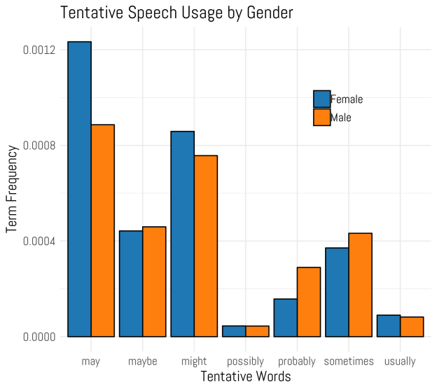 We wanted to use the dataset that we had collected to test some of the major theories in gendered communication, which is the idea that men and women use different kinds of words for a variety of sociological reasons. For instance, vast swaths of literature indicate that women use more tentative speech than men. Consider these two examples: