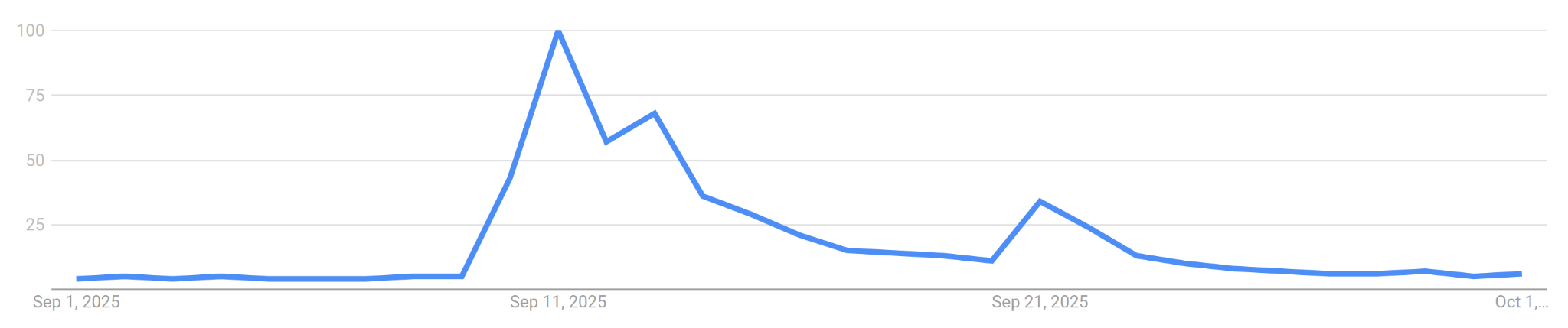 If Kirk can be disunifying through his absence, we’re more intrigued by the effects on unity of his image as a Christian martyr. A martyr is a person killed for their beliefs and Kirk was tagged with that label in the aftermath of his murder. Google search trends for “martyr” right after his death highlight the immediate, striking association (which was higher in highly conservative Christian states like South Dakota and Oklahoma).